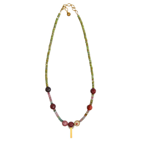 We know you will be looking for a fresh take on the trends this season! Our Mira Necklace checks all the boxes!  Rich, earthy, and quietly radiant—Mira brings together hand-cut tourmaline, polished round gemstone, and a vertical bar of plated gold that adds just the right bit of shine. The beaded strand at the neck grounds the palette, while the mix of saturated and soft gemstone tones gives it a layered, lived-in feel. This is the piece your customer will reach for when she wants something grounded but unexpected. Our retailers tell us that our jewelry is consistently chosen by the girl that loves to spoil herself and "gets dressed" everyday.