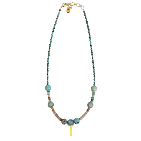 We know you will be looking for a fresh take on the trends this season! Our Mira Necklace checks all the boxes!  Rich, earthy, and quietly radiant—Mira brings together hand-cut tourmaline, polished round gemstone, and a vertical bar of plated gold that adds just the right bit of shine. The beaded strand at the neck grounds the palette, while the mix of saturated and soft gemstone tones gives it a layered, lived-in feel. This is the piece your customer will reach for when she wants something grounded but unexpected. Our retailers tell us that our jewelry is consistently chosen by the girl that loves to spoil herself and "gets dressed" everyday.