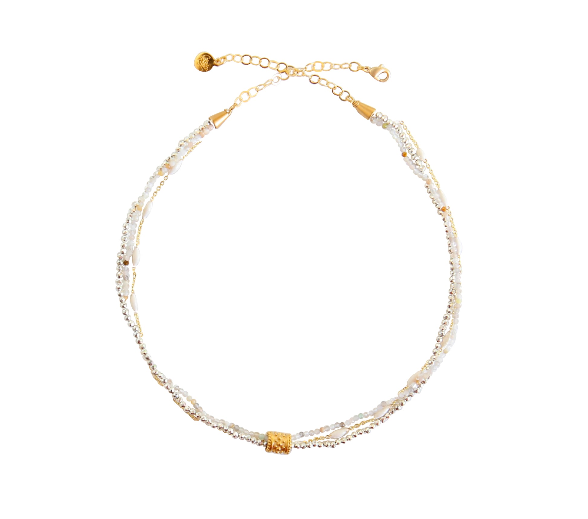 We know that you will be looking for a fresh take on the trends this season! Our Chiffon Multi Strand Necklace in White checks all the boxes! Playful elements come together with a refined edge, featuring a centralized gold finding, enamel chain, and semi precious stones. The design balances whimsy with sophistication, giving it an effortless style that stands out. And who doesn't love three necklaces in one?! Our retailers tell us that our jewelry is consistently chosen by the girl that loves to spoil herself and "gets dressed" everyday.