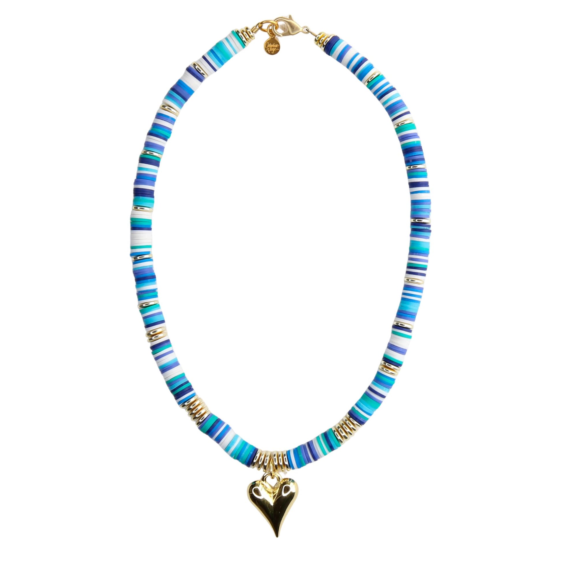 Melon Short Necklace in Blues with Heart