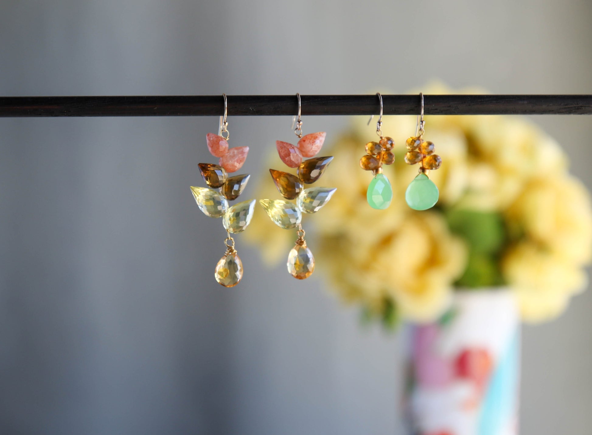 Our spring line was inspired and named by dances around the world. The Samba Earrings sway with effortless rhythm. Faceted drops of chalcedony cascade like fluttering steps, leading to a bold final briolette flourish. Each gemstone catches the light with movement, creating a lively interplay of shimmer and hue. Fluid, dynamic, and full of spirit, these earrings embody the grace of motion and the joy of adornment.