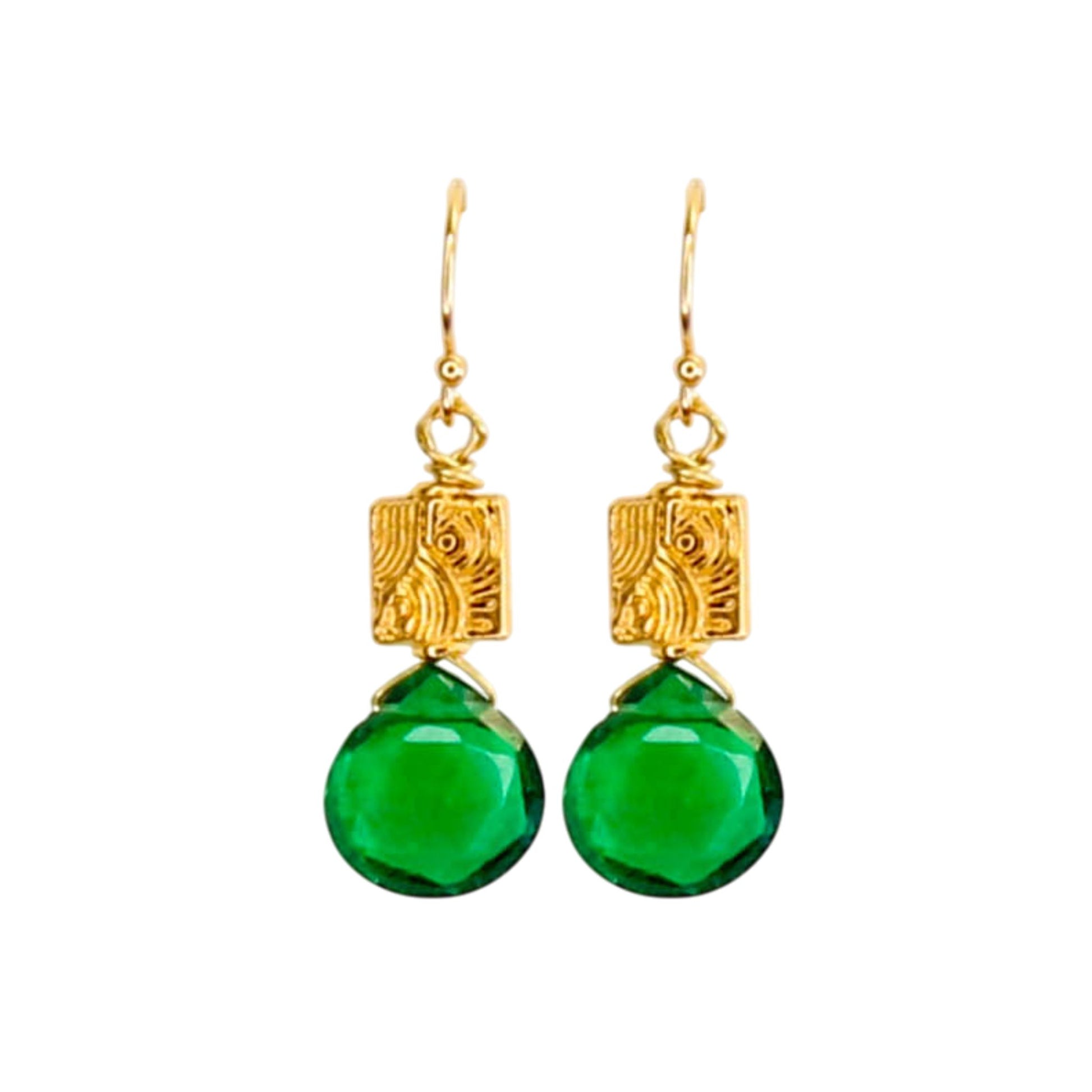 In this brand best seller, a simple gemstone briolette is topped with our cast gold dipped finding and dangles from our signature gold filled ear wire. Lightweight and versatile, they offer a sophisticated yet playful accent to any look.