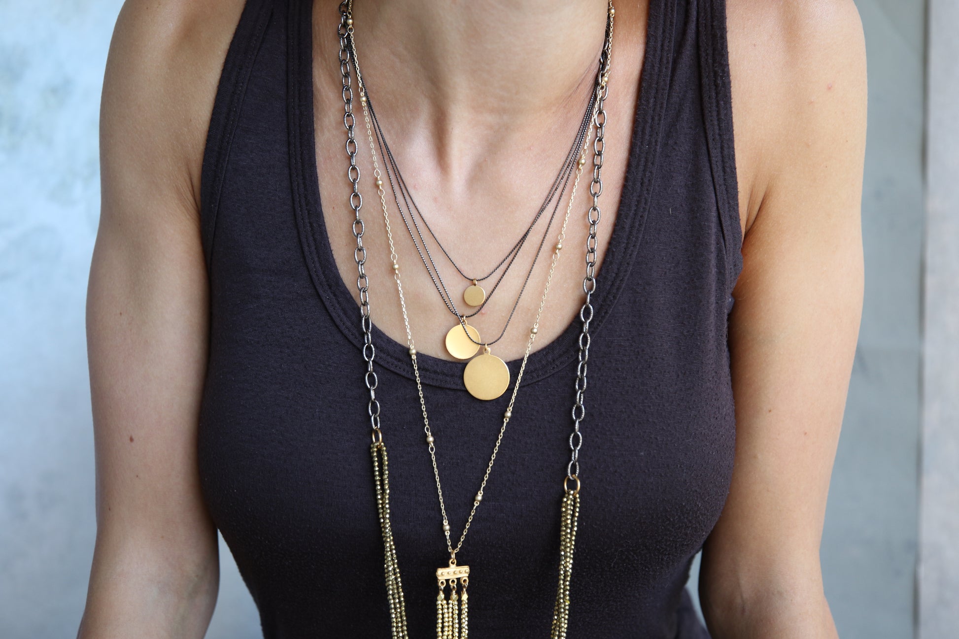 The Velour Triple Strand Necklace is for the woman who wants to feel finished without feeling styled. She layers instinctively, moves confidently, and doesn’t second-guess her choices. The multiple chains create a soft, intentional cascade—never stiff, never fussy—settling naturally into place as she moves through the day.